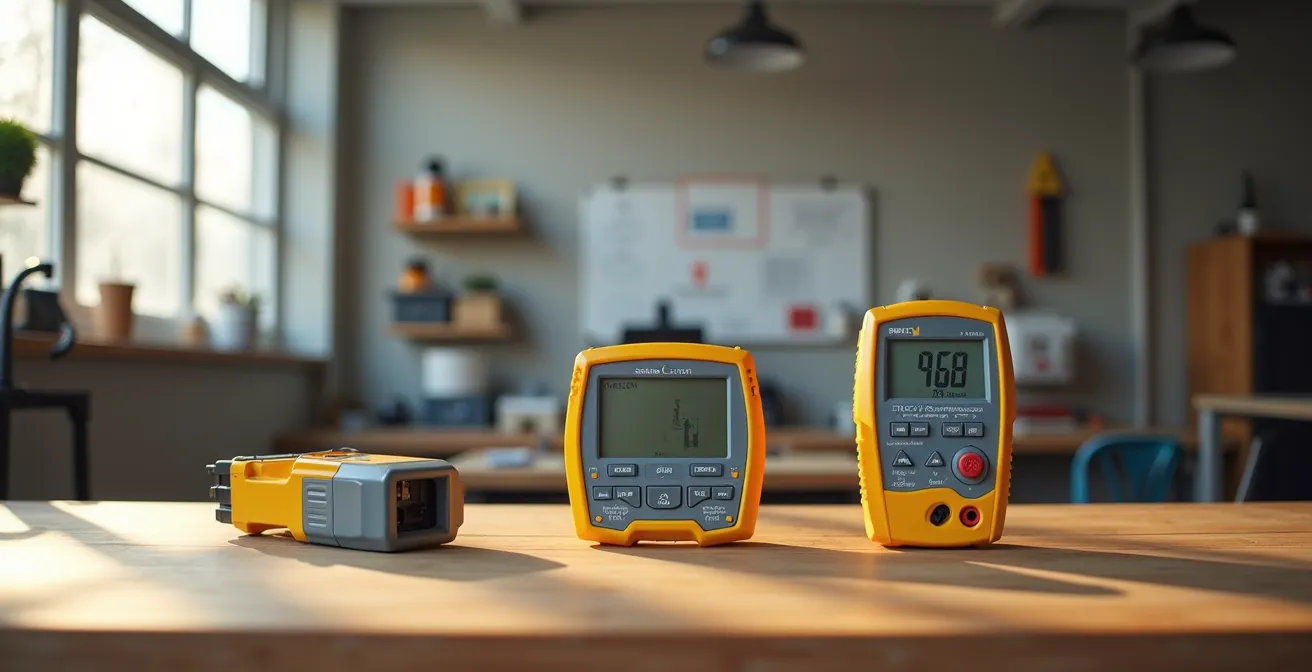 Contrairement à l’idée reçue, l’outil le plus crucial pour un débutant n’est pas le multimètre polyvalent, mais le Vérificateur d’Absence de Tension (VAT) pour une raison non-négociable : votre sécurité.